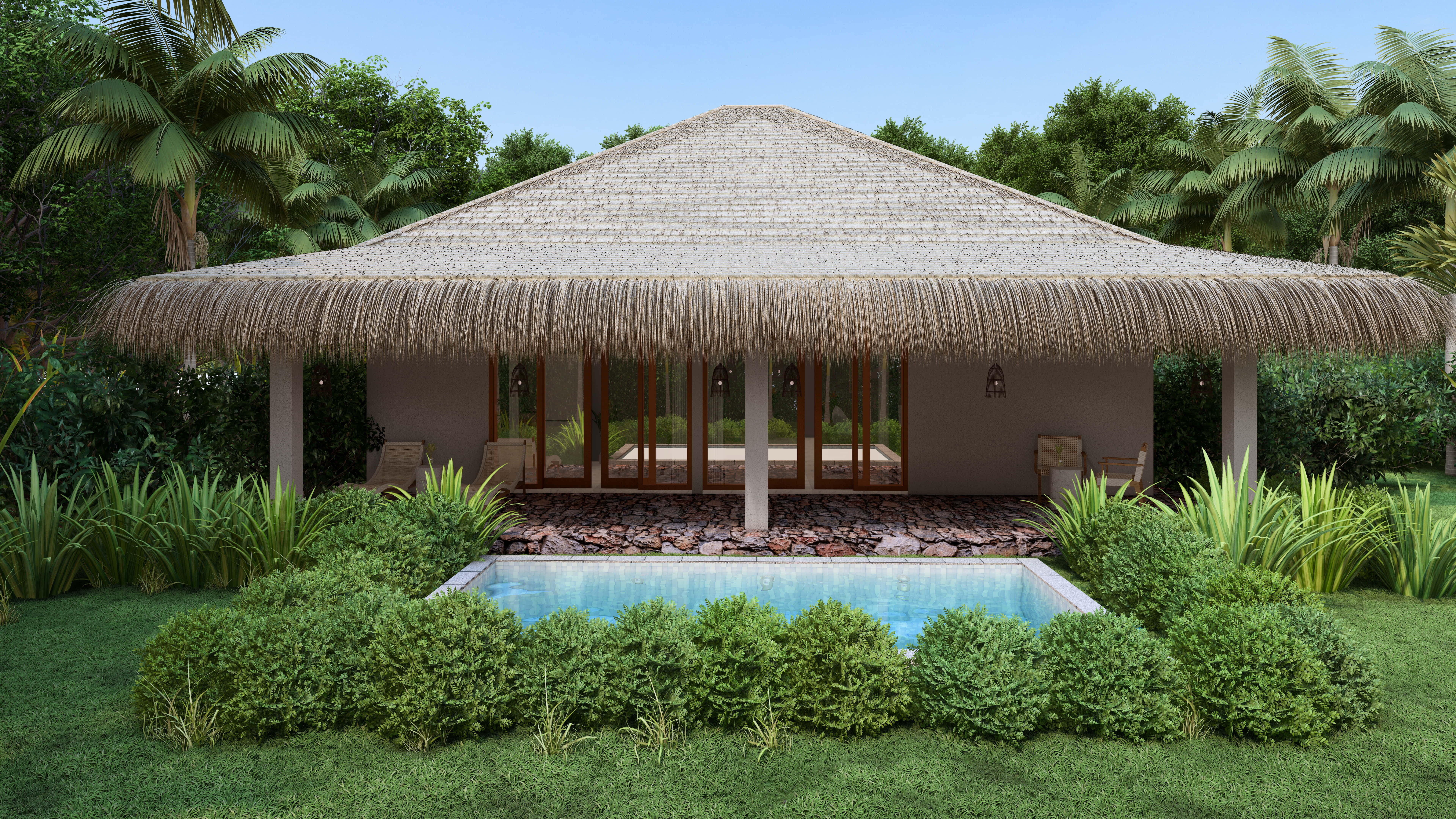 The 1 bedroom villa is designed for a couple who love their privacy. The entire plot around the villa will be surrounded by all kinds of plants and they will form a hedge. Combined with the pool, it will be the perfect place to relax on a tropical island.