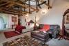 A beautiful, up-market 3-bedroom thatched double storey self-catering home for accommodation. Downstairs: Open plan lounge, dining room, kitchen and a guest toilet. One large bedroom and a full en-suite Upstairs: On the platform is a large open plan room where there is comfortable chairs and a queen size bed, which leads through to the main bedroom. One shared bathroom (shower, basin and toilet).