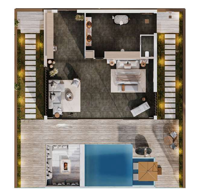 Elegant and well-appointed, the Hotel Suites combine contemporary comfort with subtle Zanzibari design elements. Each suite offers a serene space to unwind, with access to all the signature amenities and experiences of the resort. Type: Hotel Suite. Size: 57,5 sqm. Hotel Suite, Ground Floor. Price: 400,000 USD, 1,475,000 AED. Hotel Floors 1& 2: 350,000 USD, 1290,000 AED.